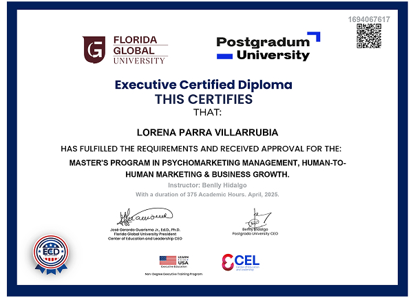 - Diploma Internacional CEL Master Program, avalado por la Florida Global University.